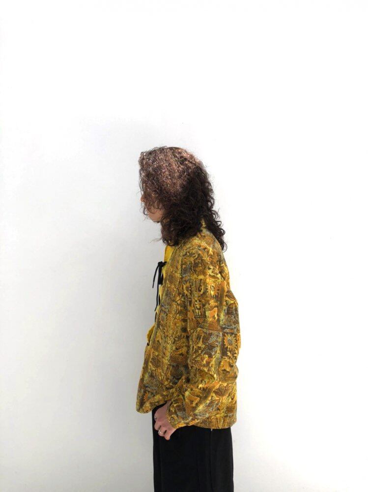 60s pullover shirt A very tasty yellow x brown batik pattern with a cute large lace-up chest. A cotton texture that has changed softly over time. A good silhouette with a moderately relaxed look.
