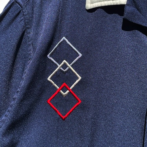 The dark navy body collar is switched with white co-fabric, the design with tuck and emblem embroidery on the chest, while following the vintage style of the 50s, it is refined with a somewhat jazzy atmosphere like Da Vinci. It features a new design.