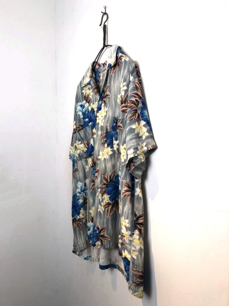 50s Vintage Aloha Shirt Blue hibiscus printed in light gray color Vintage Aloha with a very cool and mature atmosphere. Light and soft falling fabric unique to rayon The size that can be worn comfortably, which is rare for Aloha shirts of this age, is also wonderful. 1st place