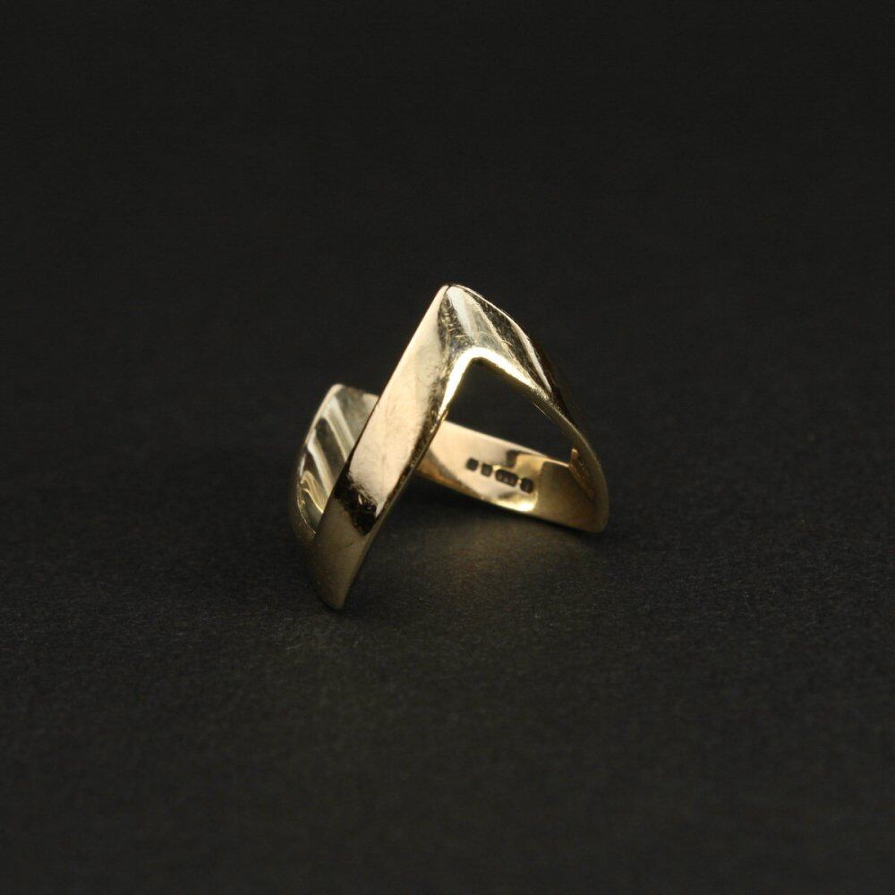 Wishbone means the wishbone of a bird, and it is said that people who eat turkey (chicken) together on a special day and hit a larger bone (or a beautiful V type) are lucky, mainly in the United States and the United Kingdom. It was. This custom is said to have existed since ancient Rome. As a jewelry design, it was popular in the early 1900s and was used as a lucky charm for wedding rings. Due to its shape, it is easy to stack with wedding rings, etc., and the point is the waved design with a simple and minimal appearance. 375 9 carat gold, 1976 London office hallmark. Please check the condition in the photo and purchase after acknowledging the characteristics of vinteg.