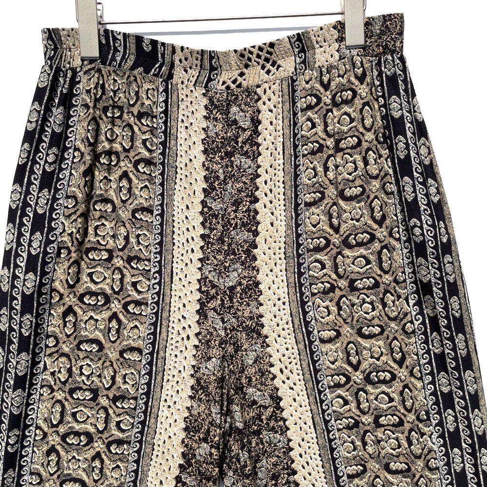 Around the 1980s, these ethnic pattern rayon easy pants have a smooth texture.