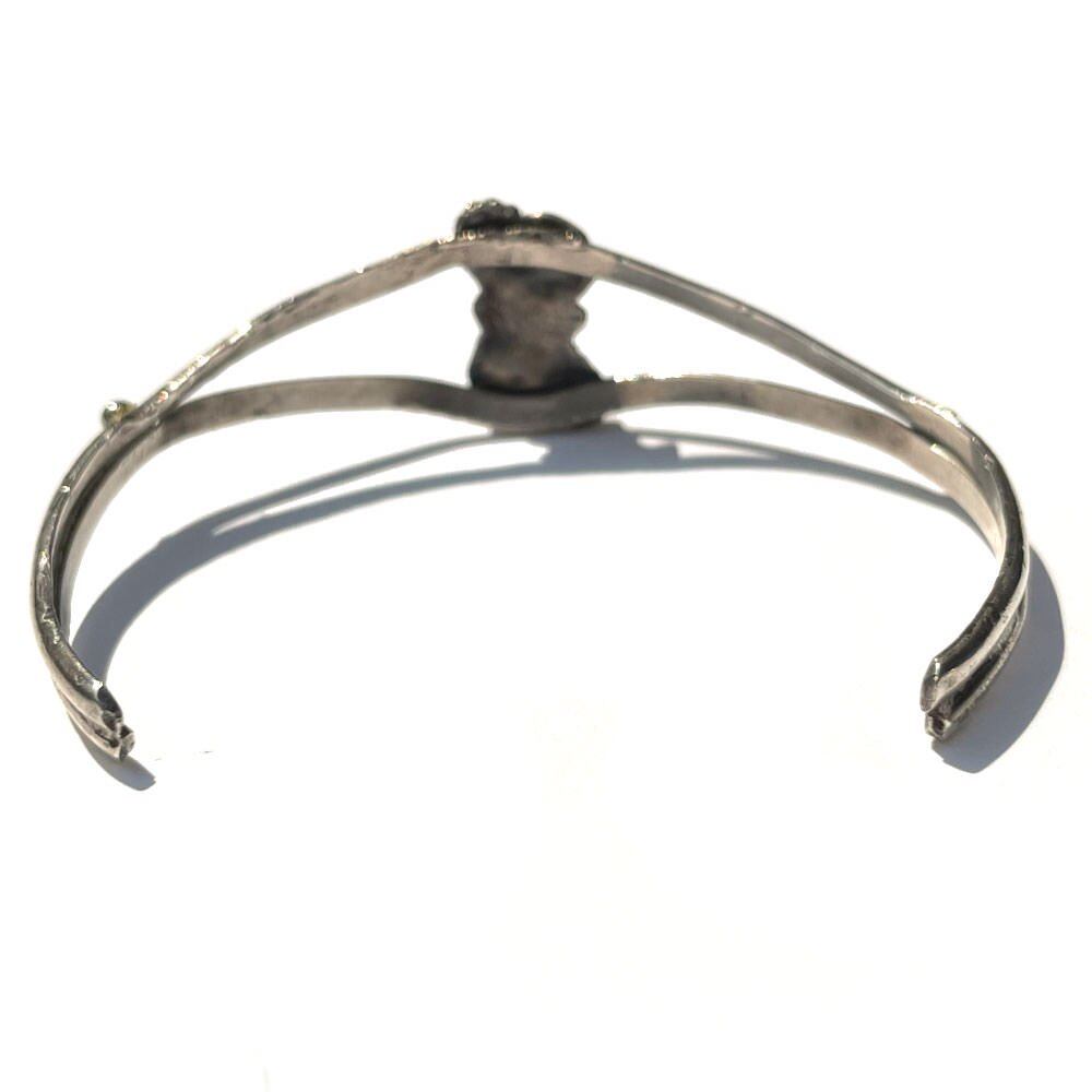 An elegant Navajo bangle with a small turquoise on the leaf decoration.