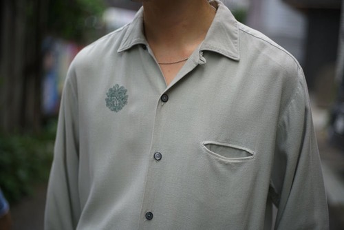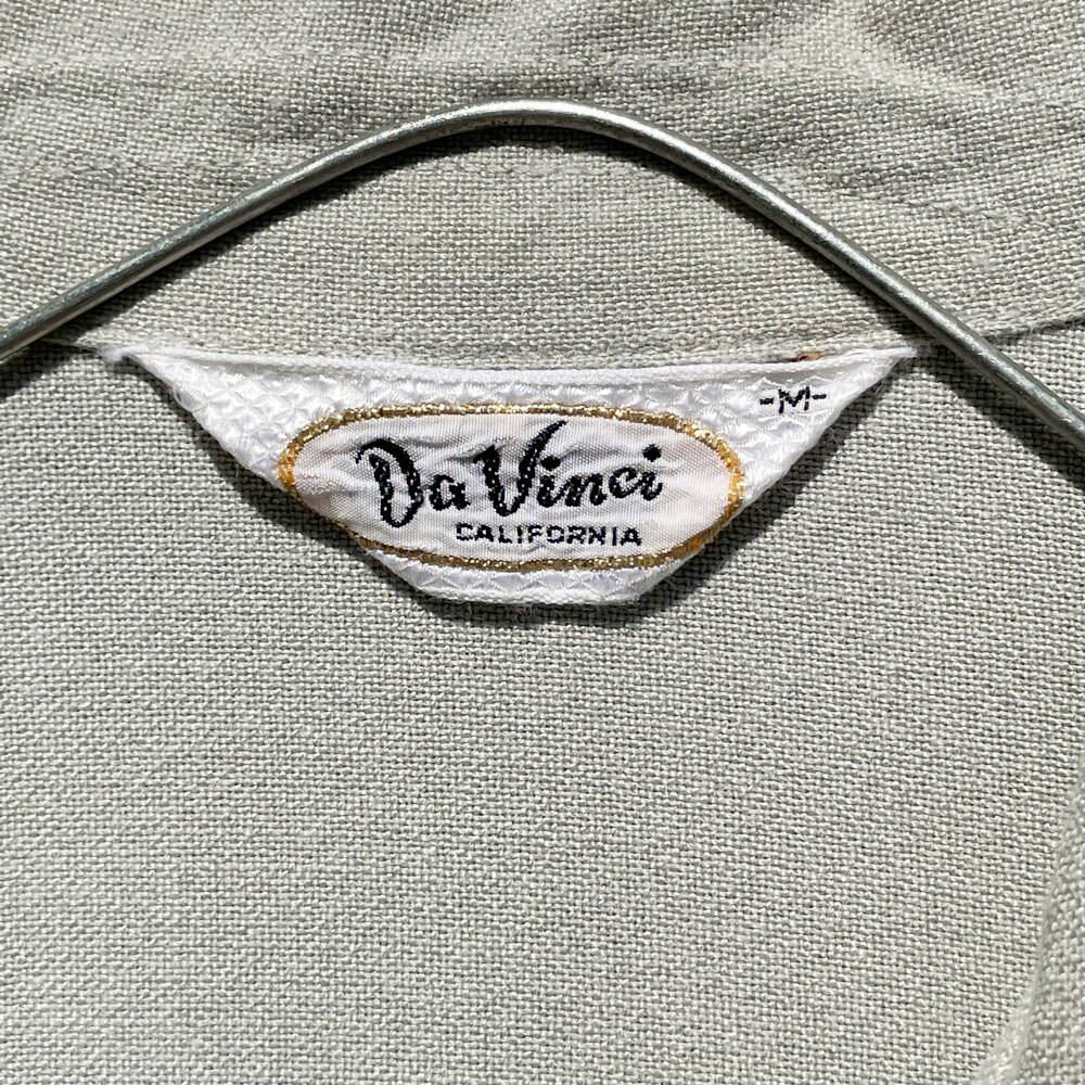 Around the 1970s, this is a Da Vinci open collar rayon shirt.