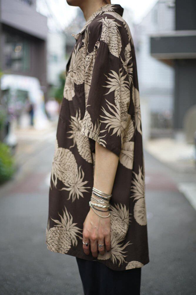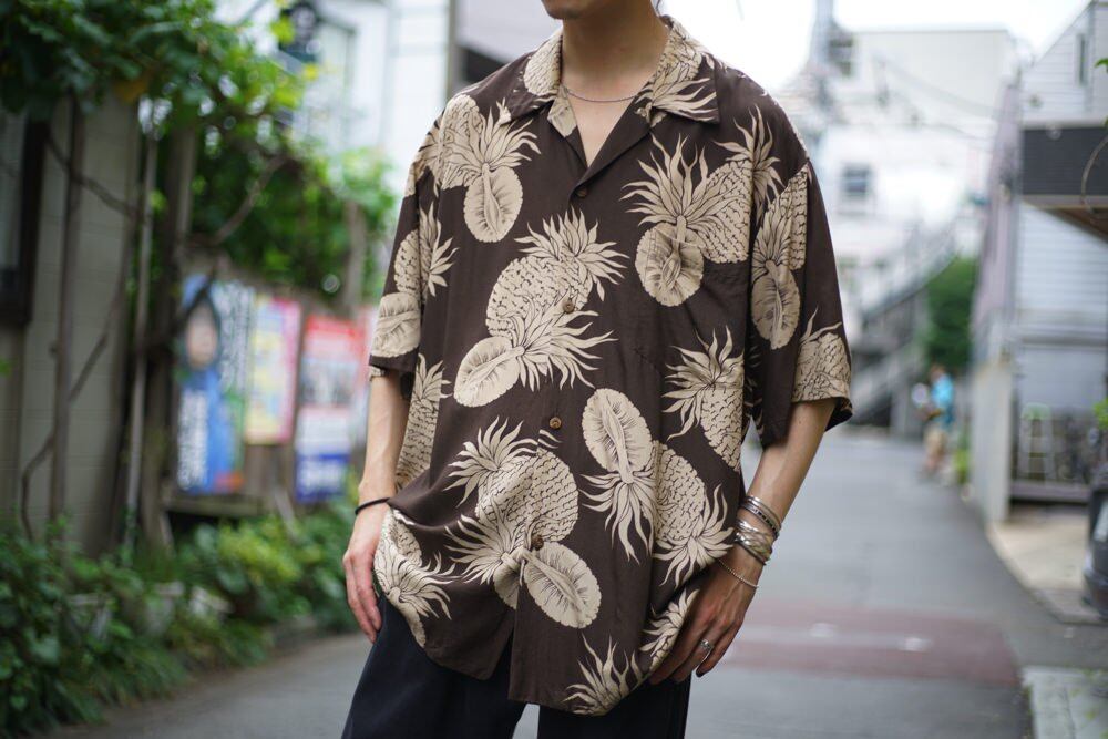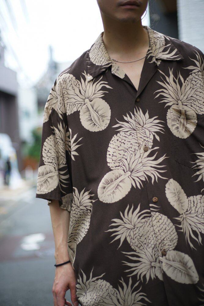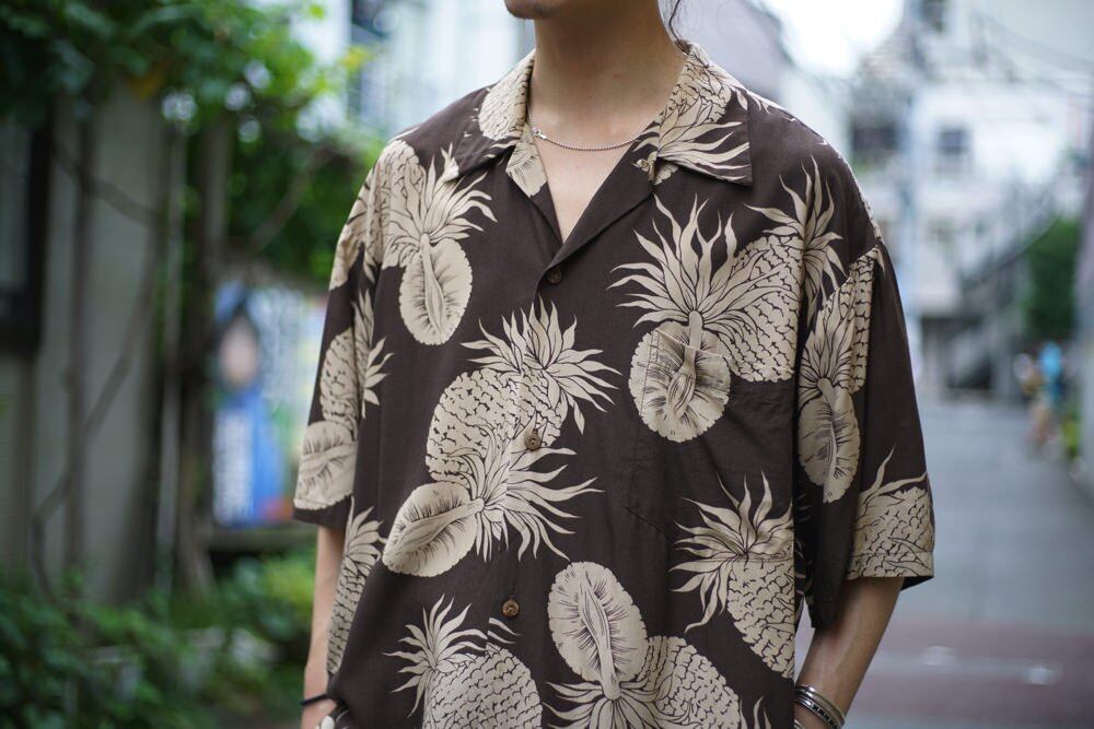 Aloha shirt made by PINEAPPLE JUICE with a comfortable silk-touch rayon fabric.