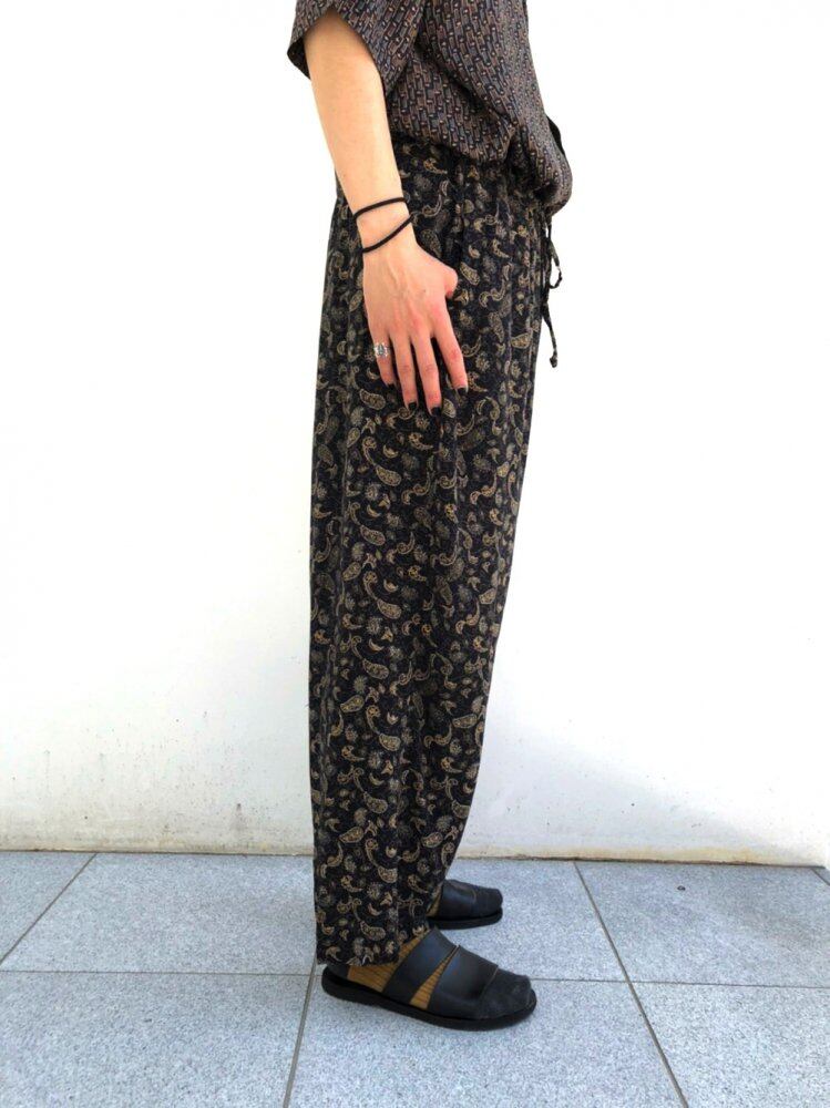 90s Rayon Easy Pants Soft and soft rayon material makes it comfortable to wear Easy pants with a nice black paisley pattern and a loose wide silhouette that is perfect for summer pants
