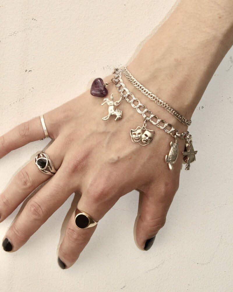 A charm bracelet that was meant as a talisman in prehistory, but became popular as fashion jewelry during the Victorian period and was revived by Tiffany in the 1980s. Many of these are also from that age and have cute charms, but Navajo, totem cloth, 2 faces, etc. have a good sense of charm and all silver charms are made of sterling silver, so I feel particular about it. Let me do it. The chain is made in Italy and is sterling silver. Since it is old, it may be scratched. Please check the photo and understand the characteristics of vintage before purchasing.