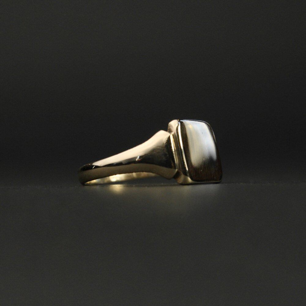 Signet ring made in England. It is the only ring that is allowed to be worn among British gentlemen who wear good things that can be used for a long time with as little waste as possible. This is an individual of a age close to a precious antique, and is characterized by a soft atmosphere with sharp edges over time. The initialless type and extremely simple minimal design is also a rare item. 375-9ct Gold, Hallmark of the 1937 Birmingham office. Please check the condition in the photo and purchase after acknowledging the characteristics of vinteg.