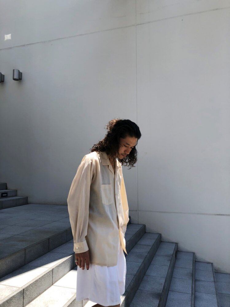 Open color shirt from the 1960s A nice off-beige color with a one-point embroidery on the chest. A stylish cotton x polyester fabric with a light and silky feel. shirt