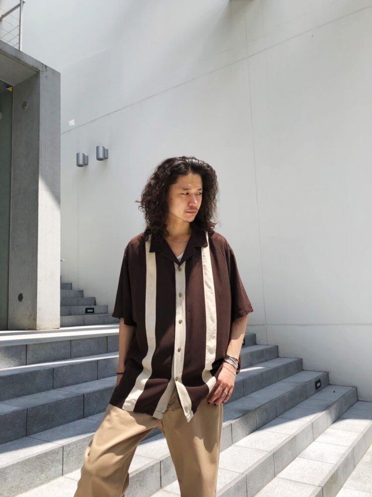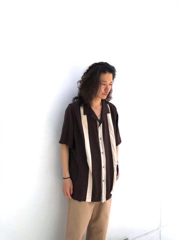 90s short-sleeved silk shirt A silk shirt with a relaxed silhouette that is moderately relaxed. Brown x beige adult-like and astringent panel stripes.