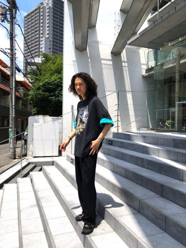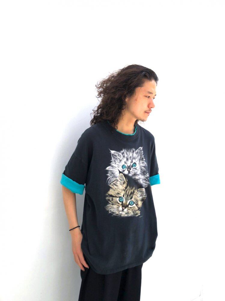 90s T-shirt A fake yard T-shirt that looks like its layered at first glance. Mint green on the collar and sleeves, and a stylish coloring that matches the eye color of the kittens printed on the chest. Recommended for style