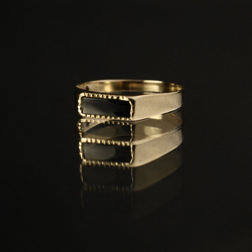 Signet ring made in England. It is the only ring that is allowed to be worn among British gentlemen who wear good things that can be used for a long time with as little waste as possible. The elegant look of the top design with onyx arranged in a rectangular narrow silhouette. It is a ring with a minimalistic impression that you can not easily find when you look for it. 375-9ct gold, made in England. Please check the condition in the photo and purchase after acknowledging the characteristics of vinteg.