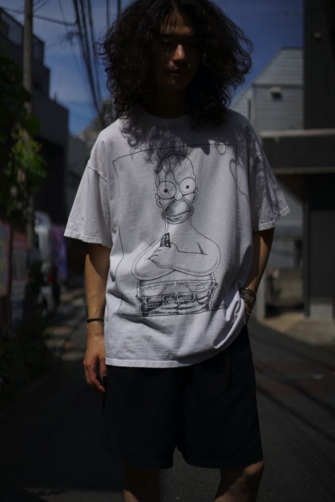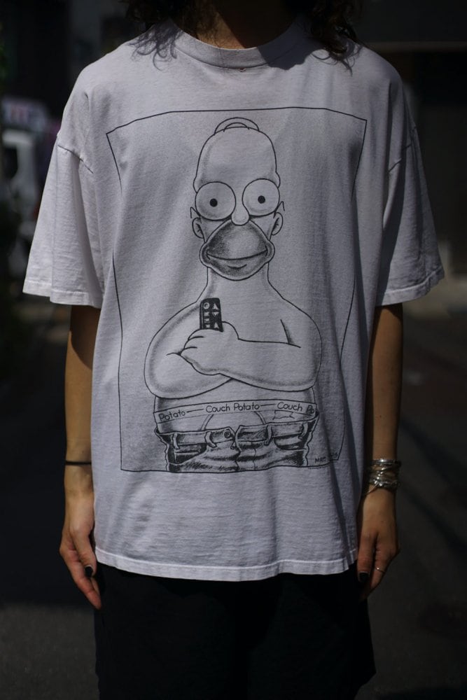 Homer Simpsons portrait-like touch print and 90s-like playful artwork with a back print on the back.