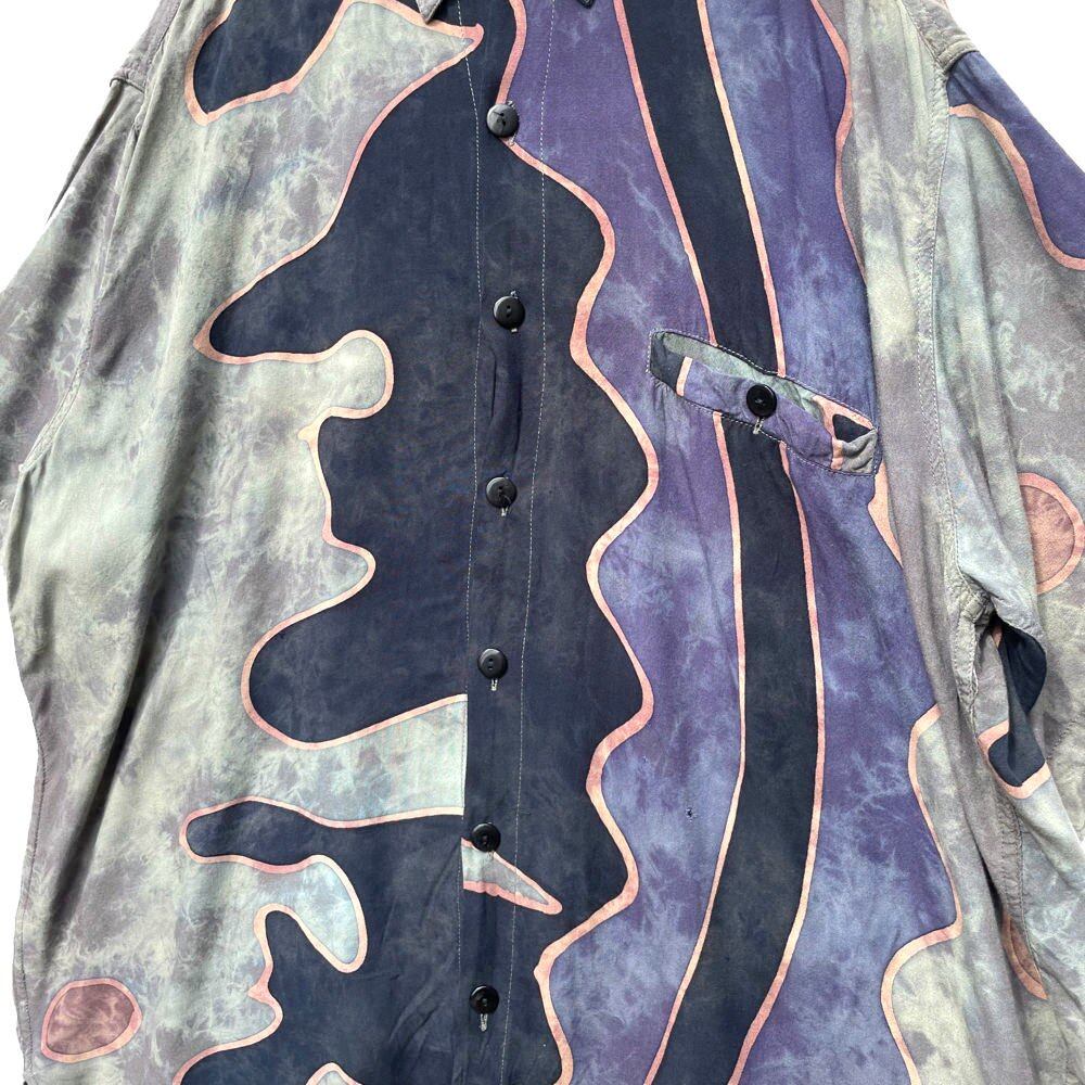 The psychedelic artwork that draws an abstract curve on the body dyed with tie dye is impressive.