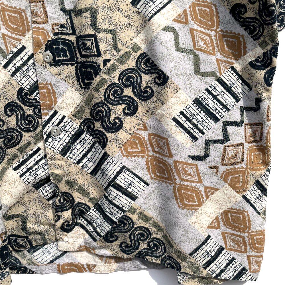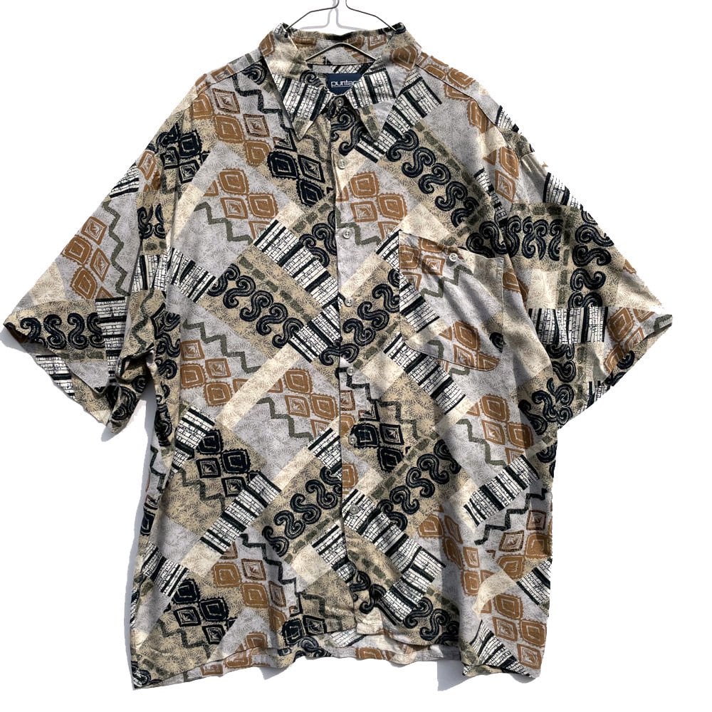 An art print rayon shirt with a moist and soft texture.