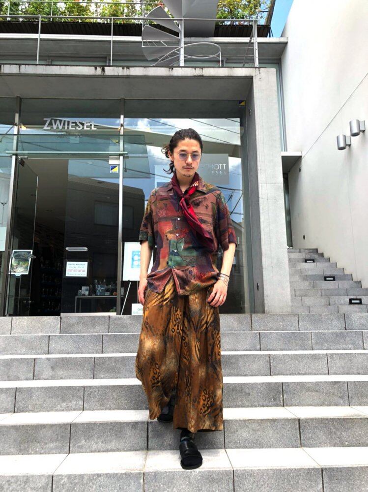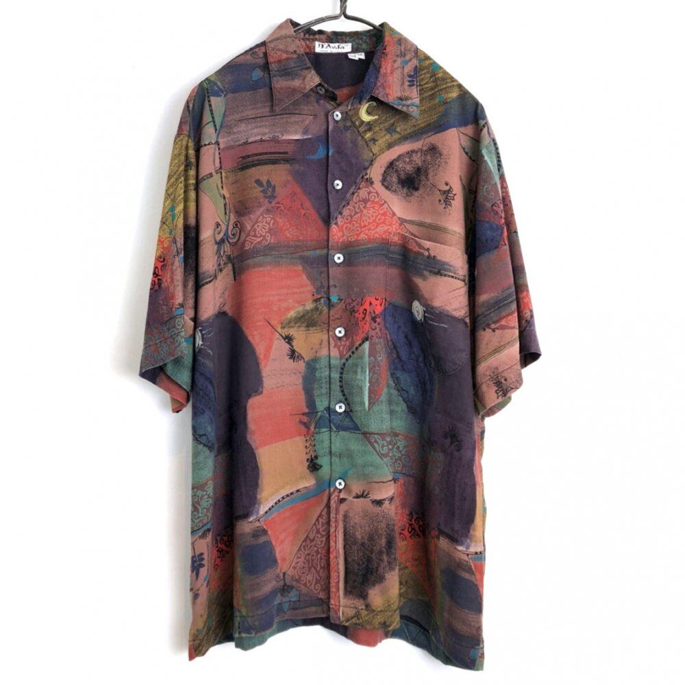 80s short-sleeved rayon shirt Brown-based artistic ethnic pattern has a nice atmosphere Light and soft rayon fabric with just the right amount of space