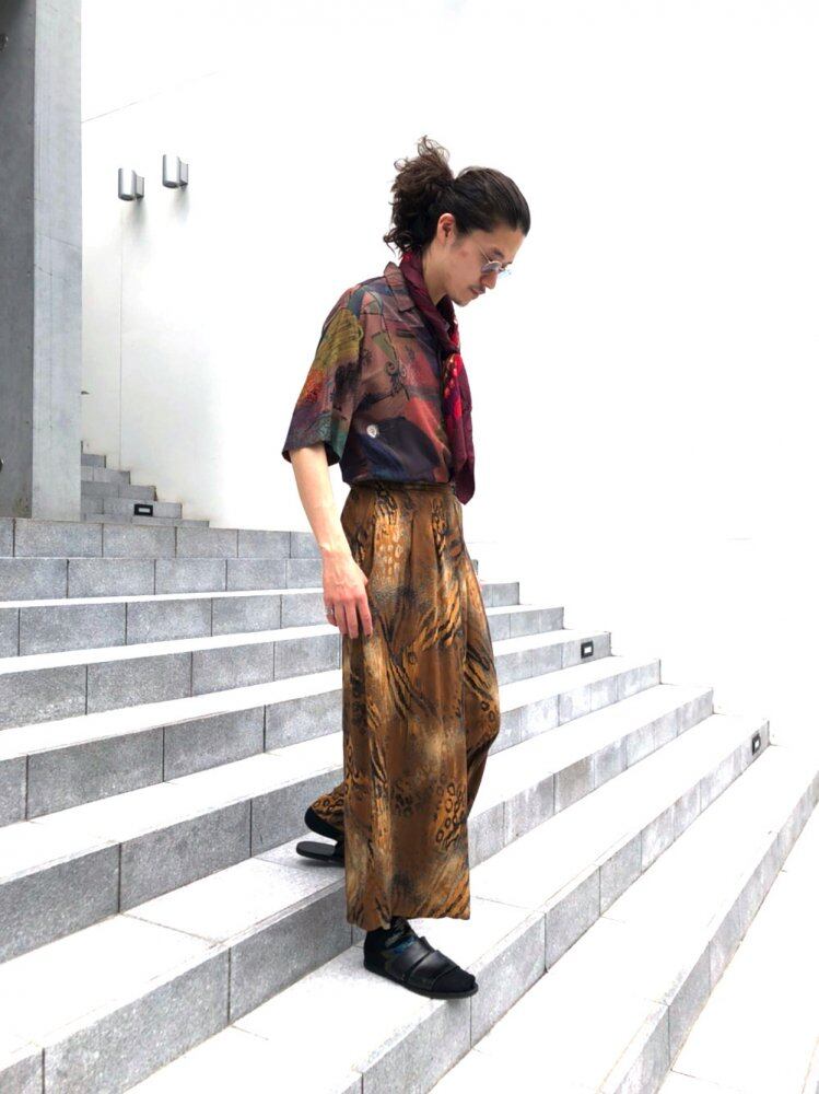 80s rayon easy pants A brown-based mixed animal pattern of leopard and zebra. The wide silhouette of rayon fabric with a fluttering and fluttering feel combined with the pattern makes it a cool and comfortable item for summer. Book