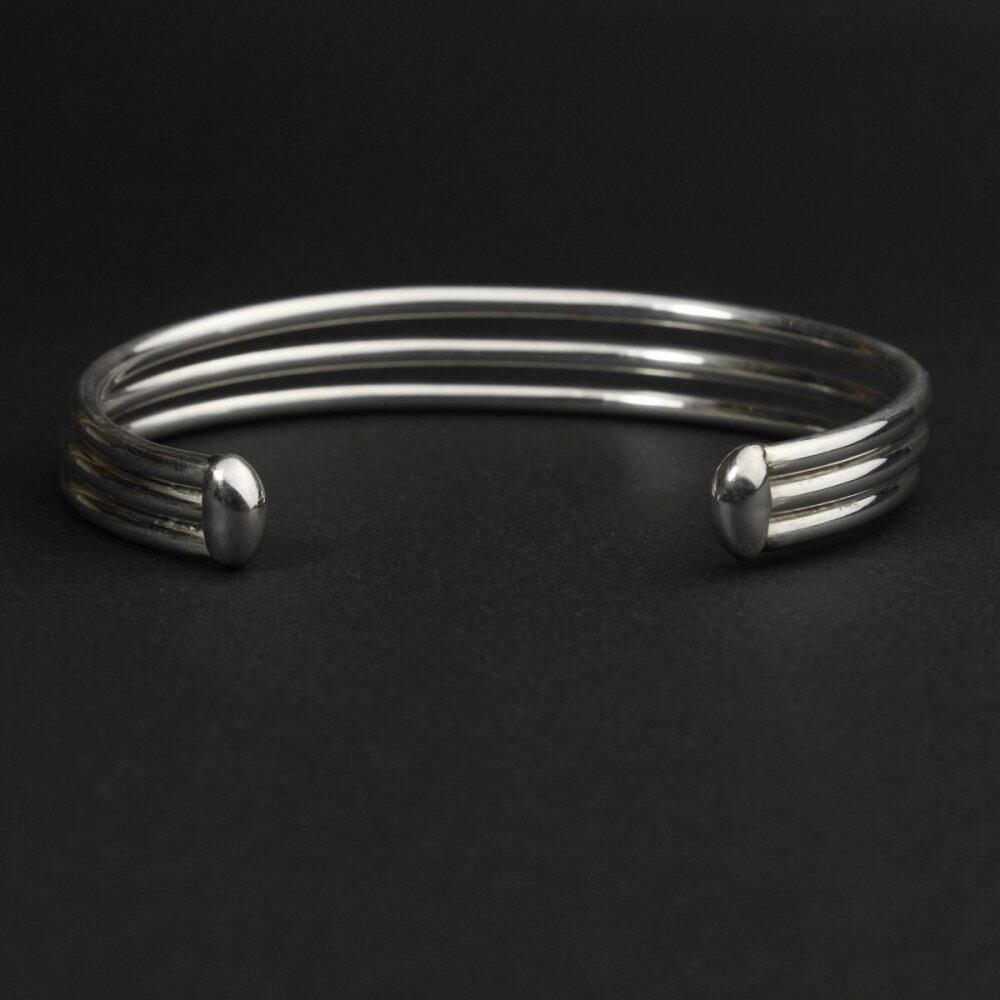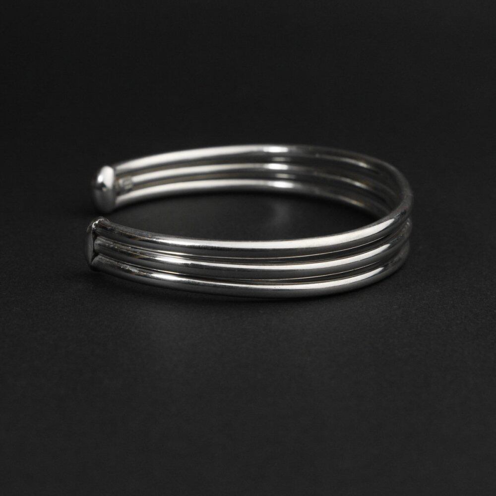 Made in Mexico, one of the worlds leading silver mining sites, where many silver artists and craftsmen have gathered since ancient times. From the native Aztecs to the Indian jewelery-like designs that show the influence of the American Southwestern, this vintage has been the focus of attention in recent years, with sophisticated minimalist designs. This is a very minimal and solid design with three wires connected. Its a very simple bangle that you cant easily find when you look for it. It is sterling silver. It is a valuable large size, and it is not so hard, so you can adjust the size (squeeze). Since it is old, it may be scratched. Please check the photo and understand the characteristics of vintage before purchasing.
