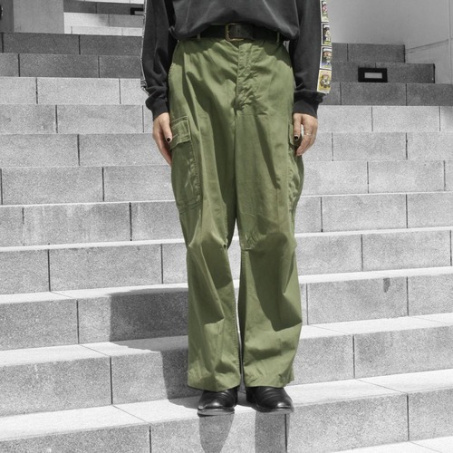 The field pants used by the US military during the Vietnam War are commonly known as jungle fatigs. It is an item that will become difficult to find in the future as its value is increasing as the number of items decreases year by year. This is the last zip front type, 100% cotton ripstop fabric. It is an individual with a good waist and length balance. There is some usability, but it is in good condition subjectively as used clothing. Since it is old, it rarely deteriorates over time. Please note that after checking the photo.