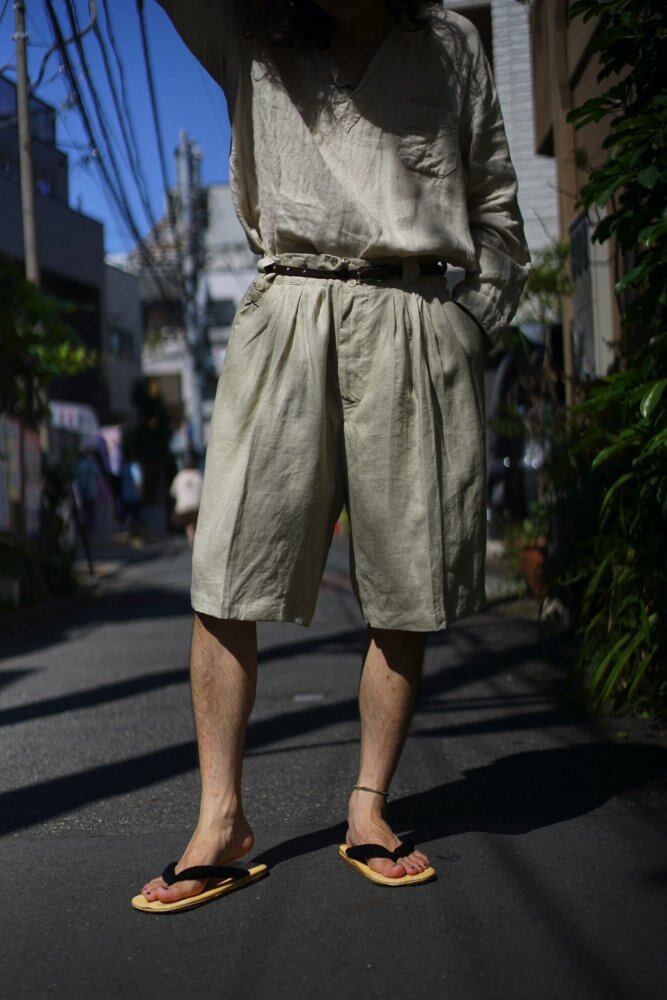 The 100% linen design features a soft and refreshing texture, and the 5-tuck design with a lot of wading gives it a three-dimensional appearance around the waist and is highly designed.