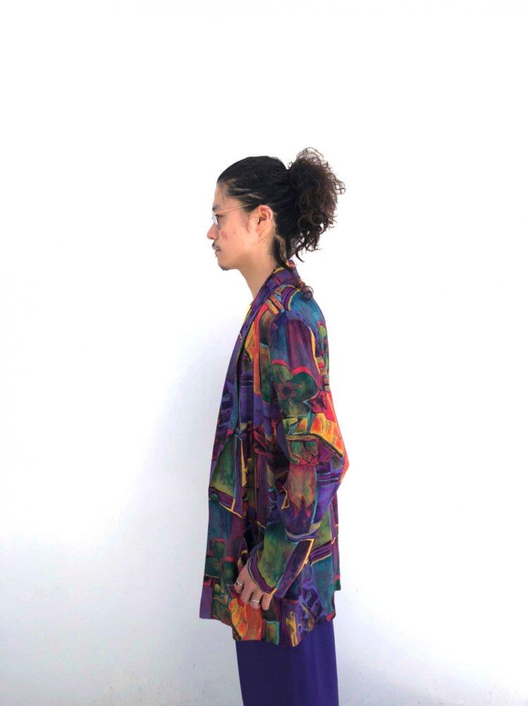 80s light jacket A crazy and powerful artistic jacket based on purple, which is made of a piece of rayon fabric with a feeling of falling and is light like a shirt.