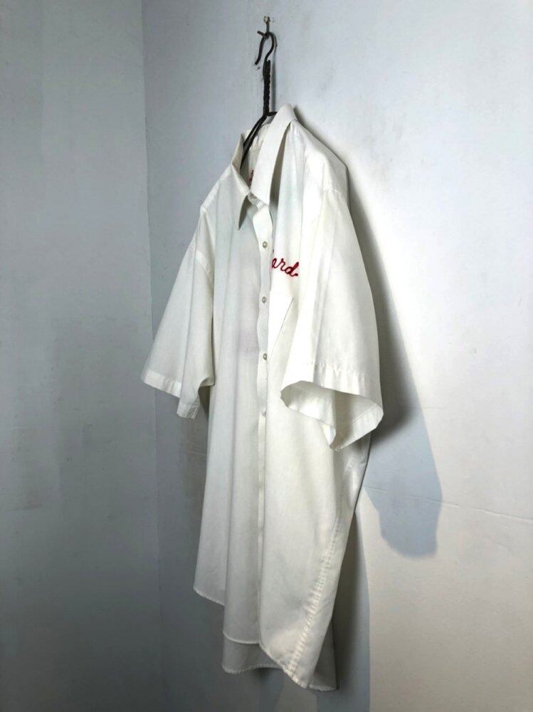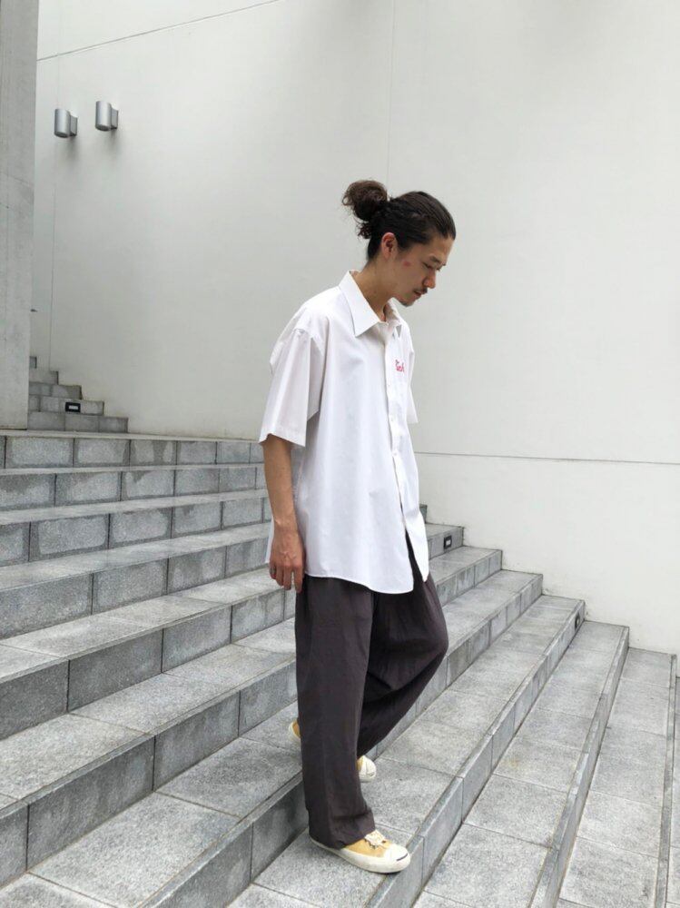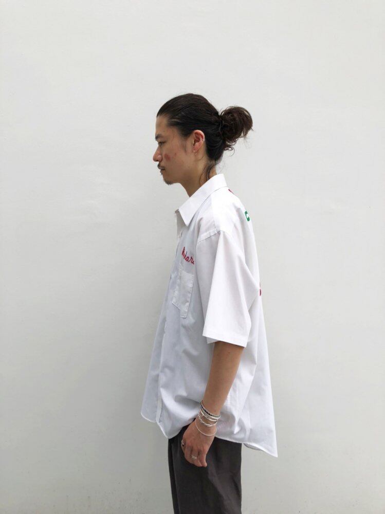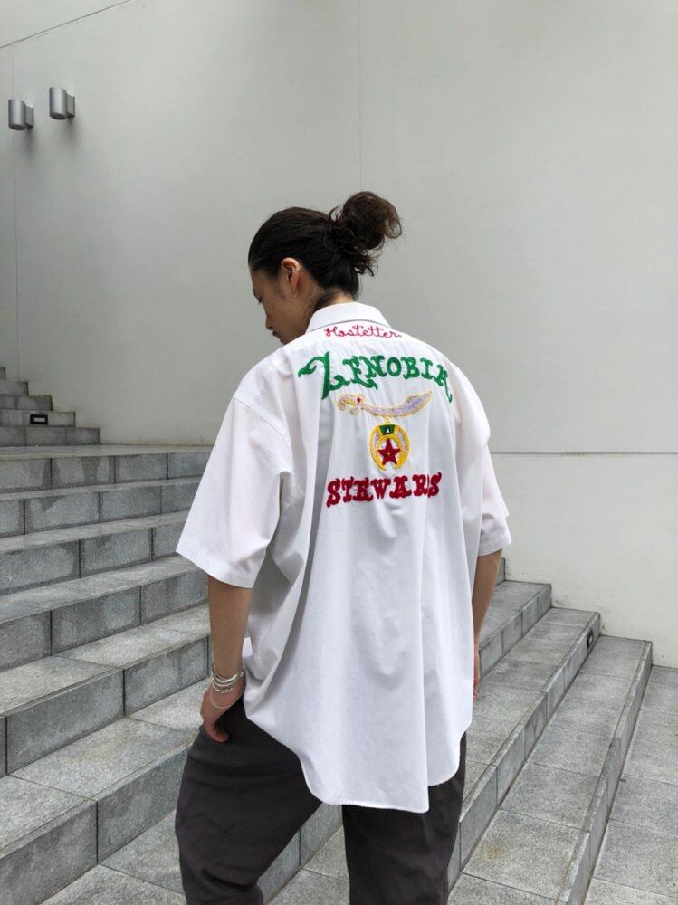 80s short-sleeved shirt A crisp cotton x polyester fabric with a design impact of embroidery on the chest and back. Big silhouette shirt with a street feel.