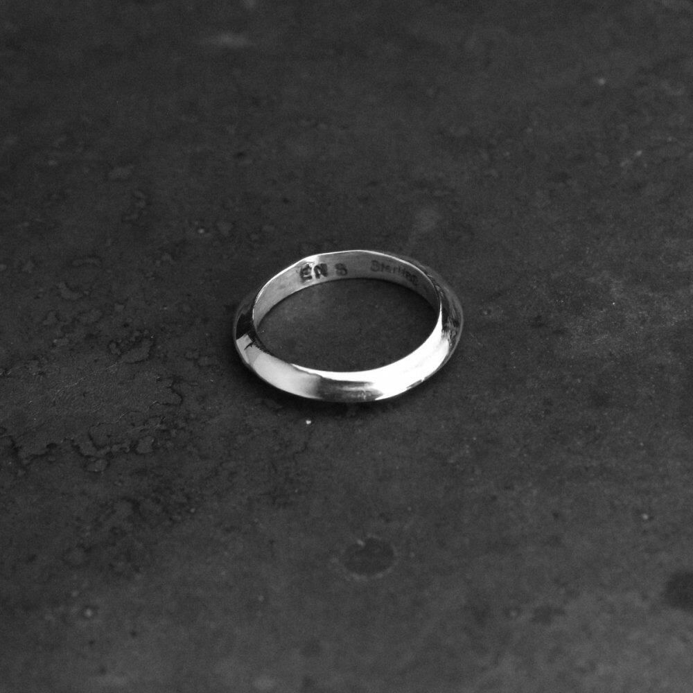 A work by Navajo female artist ERICKA NICOLAS BEGAY. All of her works use handmade ingot silver, giving off a presence that sets it apart from modern machine-produced Navajo jewelry, and because the plate making is also particular about handmade, there is no one that is the same. Each one is unique and unique. Inspired by Fred Harveys style since the 1800s, her work is different from the heavy and profound Navajo jewelery, with a delicate and delicate atmosphere and a stylish yet handmade texture. There is no dullness due to oils and chemicals that are common in machine production, and the elegant and beautiful shine unique to handmade, the careful finish feels the delicacy unique to women, and it is a mannish and delicate expression that can be recommended for women. This is a triangle type band ring. It features a minimalist look and a solid look, and is characterized by innocence not found in ordinary fashion rings. * The wearing photo is an image. The design is the same. Since it is handmade, there are scratches etc., please check the photo and understand the characteristics of vintage before purchasing.