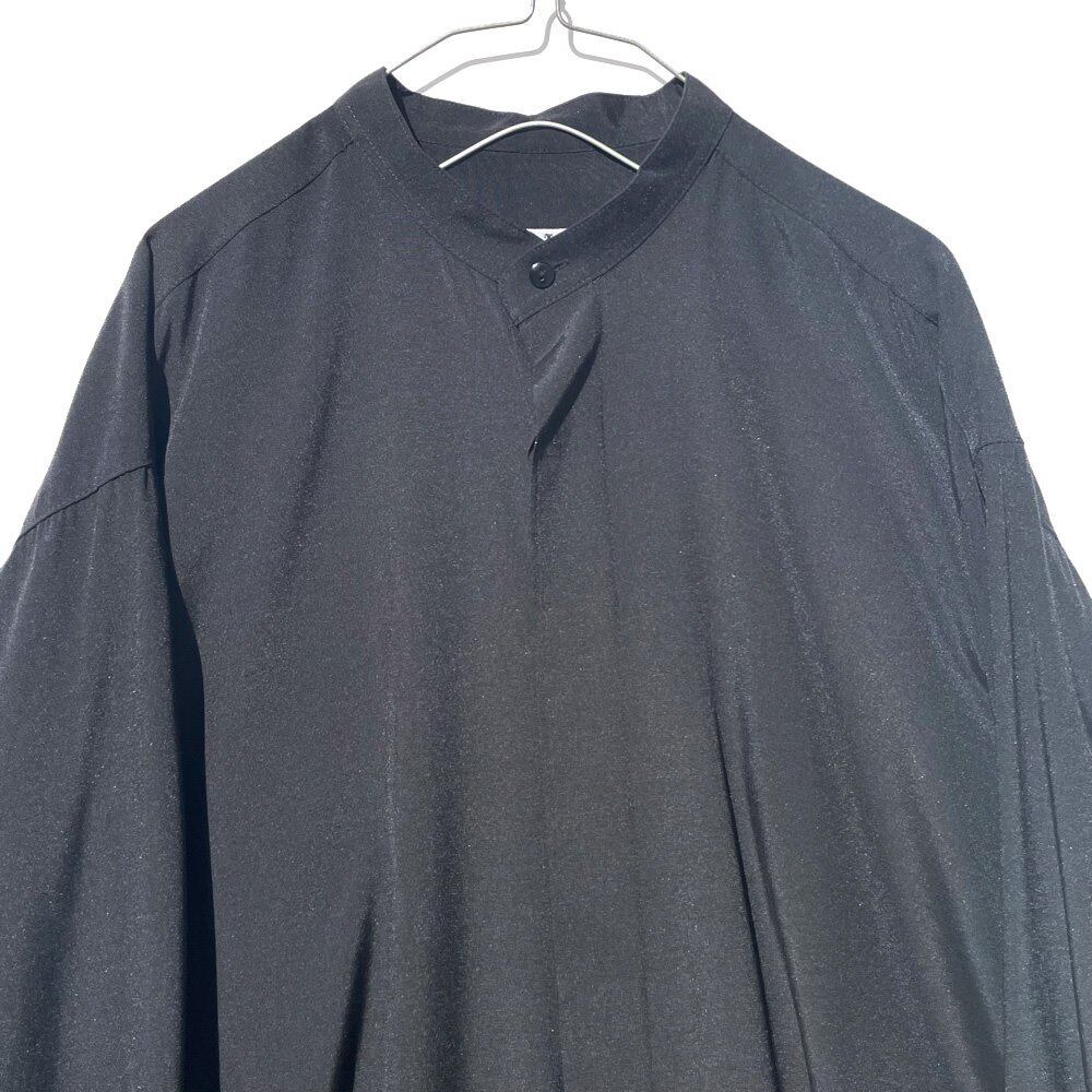 A big silhouette stand-up collar rayon shirt with a moist and soft texture.