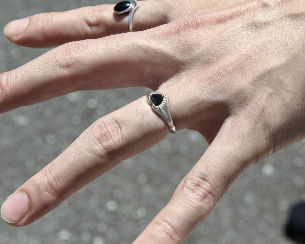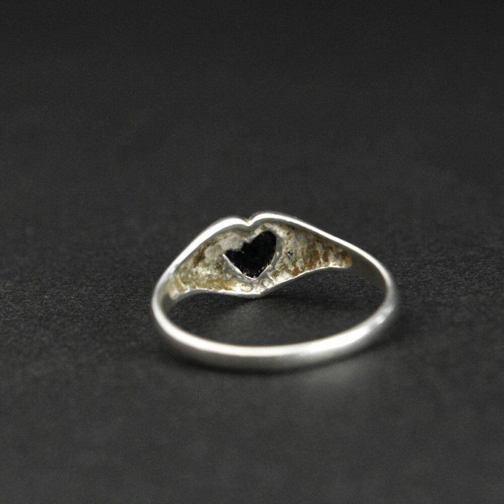 Signet ring made in England. It is the only ring that is allowed to be worn among British gentlemen who wear good things that can be used for a long time with as little waste as possible. It is a heart motif that can be seen in baby rings, eternity rings, claddagh rings, etc., but this is a precious one with onyx in the center. The silhouette is also a simple signet ring type and it seems that both men and women can wear it. Sterling silver, made in England. Please check the condition in the photo and purchase after acknowledging the characteristics of vinteg.