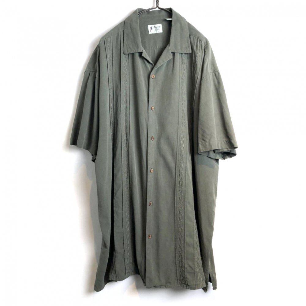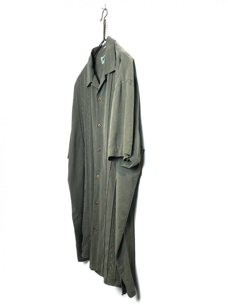 2XL size loose over-silhouette shirt Grayish olive color with a calm atmosphere The striped embroidery on the front is also an adult-like one