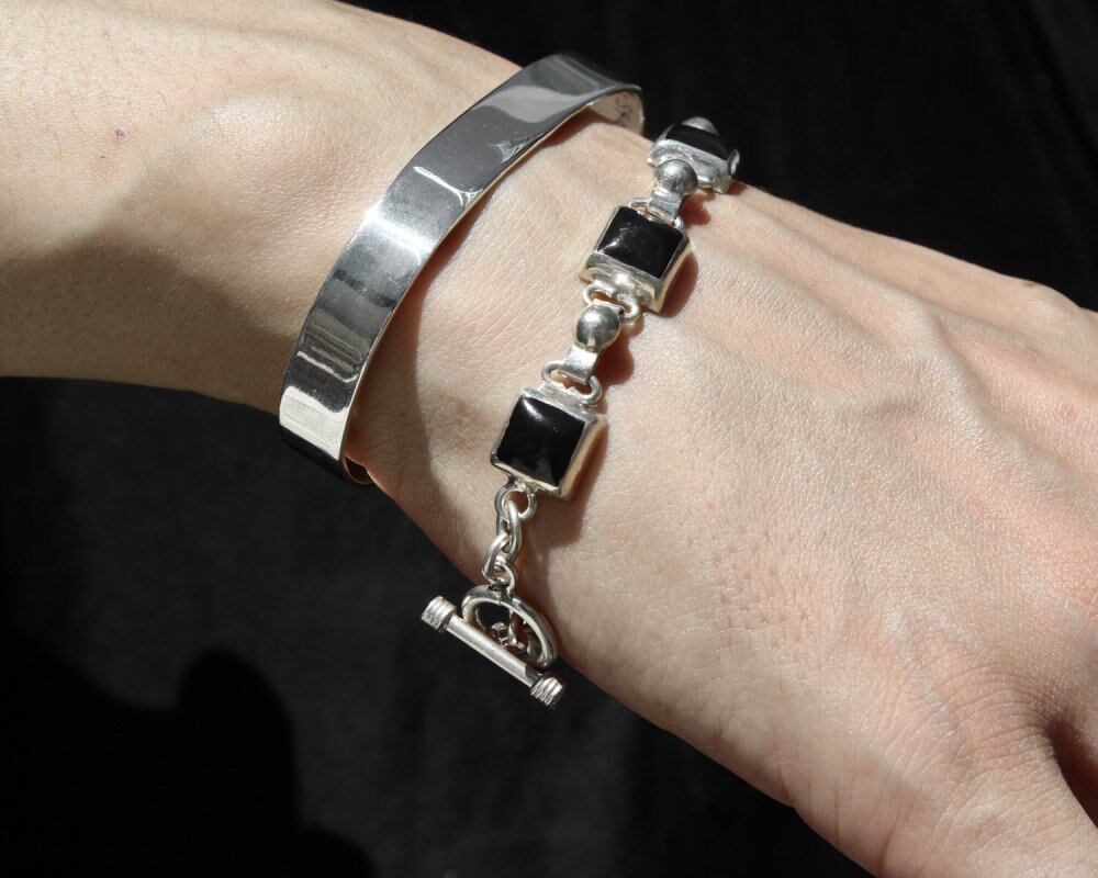 Made in Taxco, Mexico, one of the worlds leading silver mining sites, where many silver artists and craftsmen have gathered since ancient times. From the native Aztecs to the Indian jewelery-like designs that show the influence of the American Southwestern, this vintage has been the focus of attention in recent years, with sophisticated minimalist designs. This is a simple structure with onyx fitted in a square shape, and it is a valuable one that you can easily find one with a good design. It has a solid and solid appearance and is characterized by a minimal and elegant appearance. Since it is old, it may be scratched. Please check the photo and understand the characteristics of vintage before purchasing.