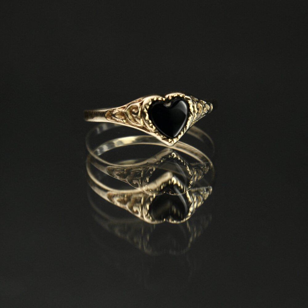 Signet ring made in England. It is the only ring that is allowed to be worn among British gentlemen who wear good things that can be used for a long time with as little waste as possible. It is a heart motif that can be seen in baby rings, eternity rings, claddagh rings, etc., but this is a precious one with onyx in the center. The silhouette is also a simple signet ring type and it seems that both men and women can wear it. 375-9ct gold, made in England. Please check the condition in the photo and purchase after acknowledging the characteristics of vinteg.