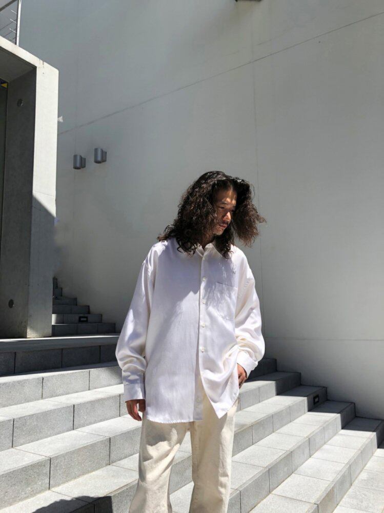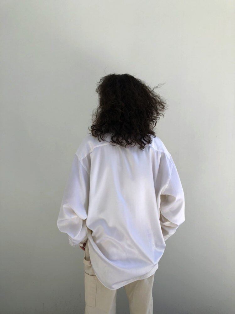 90s long-sleeved shirt Silk x cotton satin fabric that falls smoothly with a silky feel. A feeling of spaciousness and a relaxed silhouette that looks like an adult.