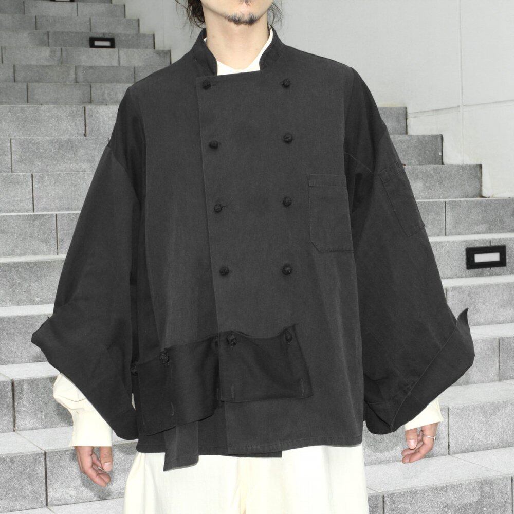 Our original pimpstick remake line The vintage cock jacket made of cotton / polyester medium flesh is disassembled and rebuilt. By using multiple panels to form a panel, the sleeve is made into a big silhouette, and the sleeve is wider, and the image like a poncho and the appearance like a haori that makes you feel Japanese are also conscious. The original double-breasted and colorless look is used as it is, and it also features a solid and minimal look. A removable continuous pocket is attached to give an accent and a sense of volume. Since it is an old product, it rarely deteriorates over time. Please check the photos and understand the characteristics of vintage before purchasing.