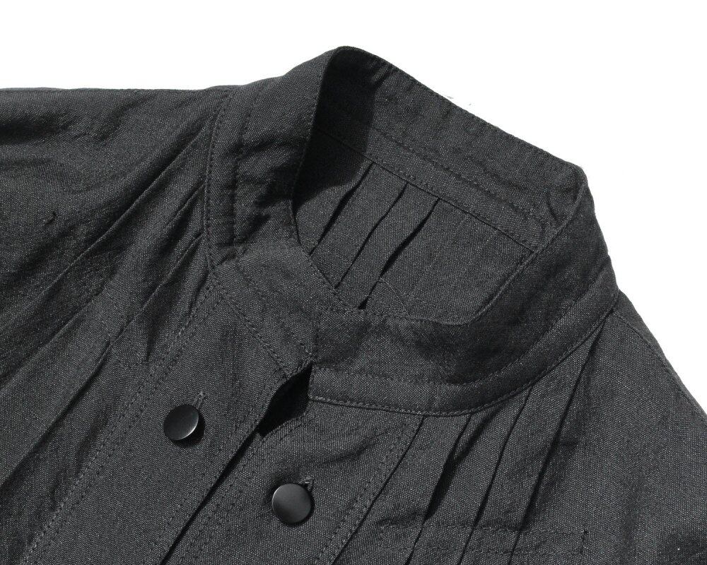 [ALVISTA] 3rd issue Vol 3. The motif is a work smock that was made in France in the early 20th century using a material called doge (a cheap cloth made by mixing wool with cotton and linen). A middle-length shirt featuring a unique A-line silhouette like a church smock that spreads from the collar to the hem with a tuck on the front and back collar to take a large amount. The button uses this nut button made from the body of Tagua palm. [Wool / Linen High Density Weather] A weather material that uses worsted wool No. 60 twin yarn for the warp and linen No. 40 single yarn for the weft, and is driven at high density. A fabric that is more repulsive and swelling than the general TW tropical fabric as summer wool, and has a more natural texture. Both wool and linen are natural temperature control fibers (wool has a moisturizing property due to crimping and has low thermal conductivity, so cold outside air is blocked in cold weather, and hot outside air is blocked in hot season. Linen contains air inside the fiber and contains air. It has the effect of staying around the linen, and a natural temperature control effect can be obtained according to the outside air. Both are fibers with strong hygroscopicity, so heat does not accumulate too much), and it is a material that can be worn regardless of the season. Also, by using worsted wool vertically, the disadvantages such as linen wrinkles are reduced.