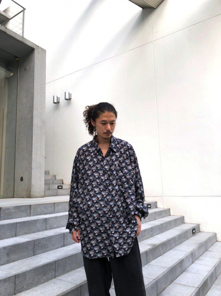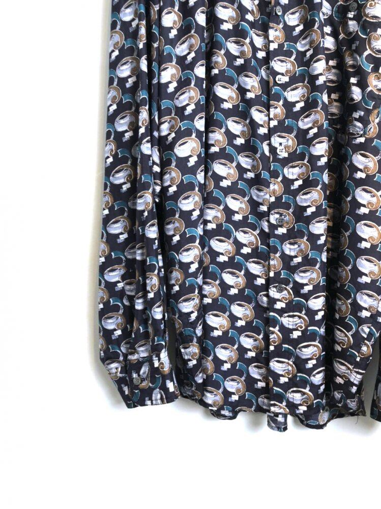 80s long sleeve silk shirt Dark navy base color with spiral art