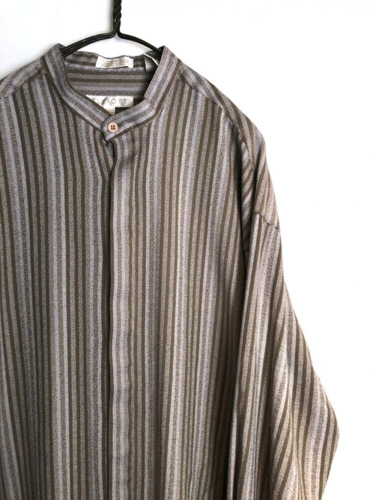 90s band collar shirt Gray stripes with a calm and mature atmosphere A piece of rayon x polyester with an artistic band color design that makes you feel relaxed and comfortable. silhouette