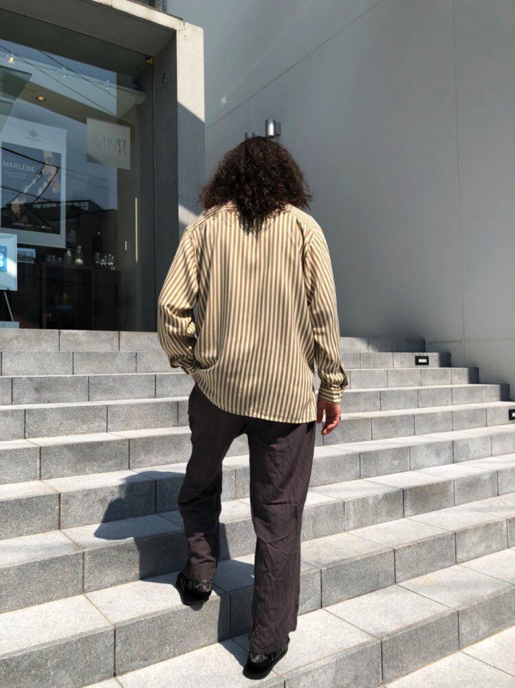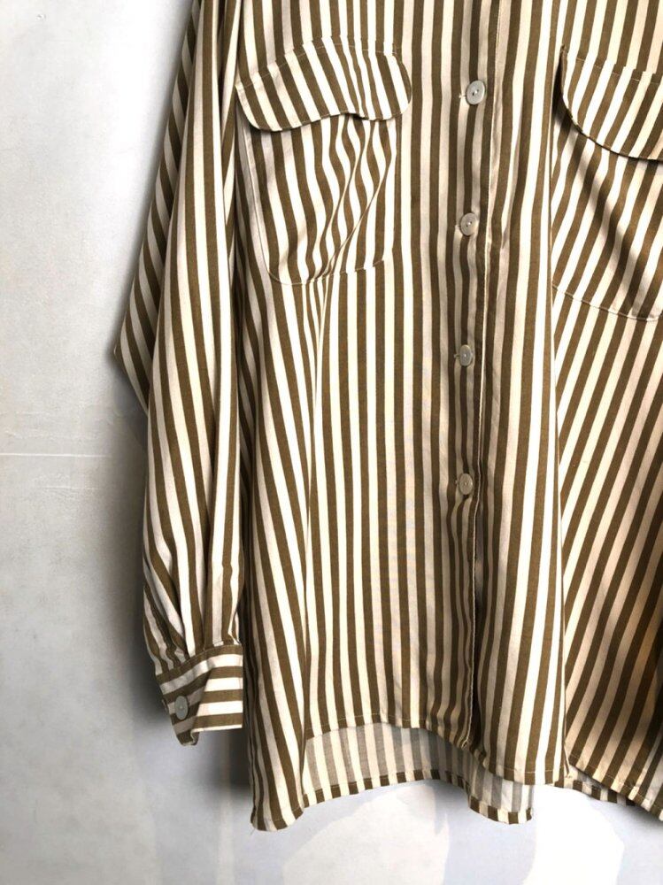 80s long sleeve silk shirt off-white x khaki gold stripes in fine shades