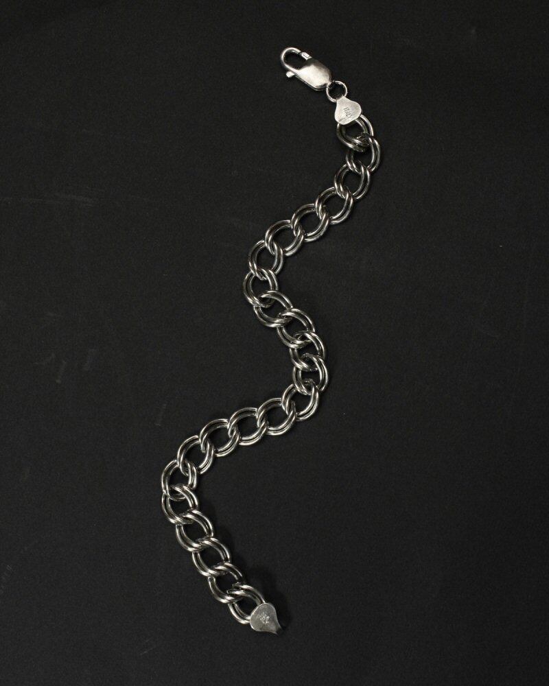 A chain bracelet made in Italy that has been known for a long time. The simple structure of two cans is a minimal and elegant appearance. An elegant shine that has been used over time, and a design that shows its presence even when worn with a single medium-thick size. 925 engraved, sterling silver. Since it is old, it may be scratched. Please check the photo and understand the characteristics of vintage before purchasing.