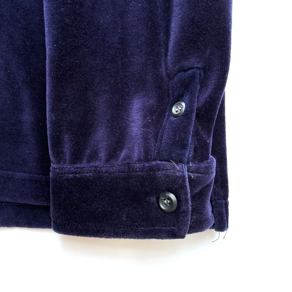 A velor shirt featuring a dark navy color that shines even from a distance.