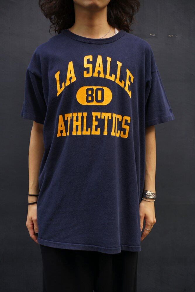 The thick body made of 100% cotton, which is soft and soft, and the rubber print on the faded dark navy color have a unique vintage presence.
