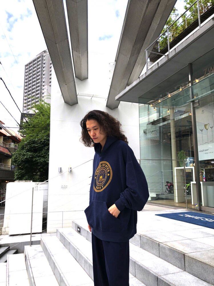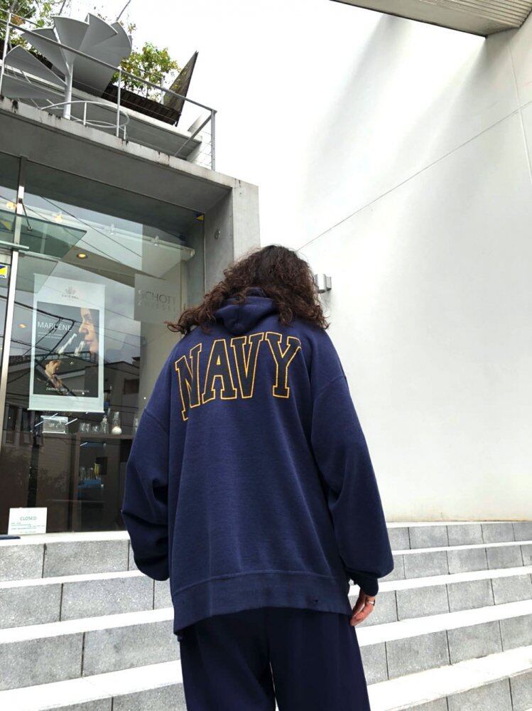 90s Sweat Parka Comfortable to wear with soft and aged sweat fabric 1 Colored faded navy color body printed with US NAVY logo is also a nice atmosphere Over-silhouette parka that you can wear comfortably