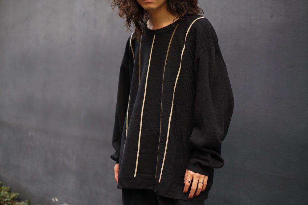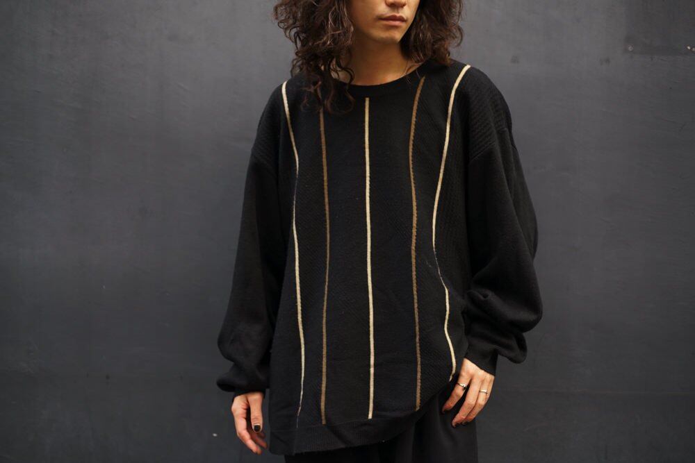 The three-dimensional knitted fabric and the stripes running in the center give an artistic impression, and it is a black-based sensual piece.