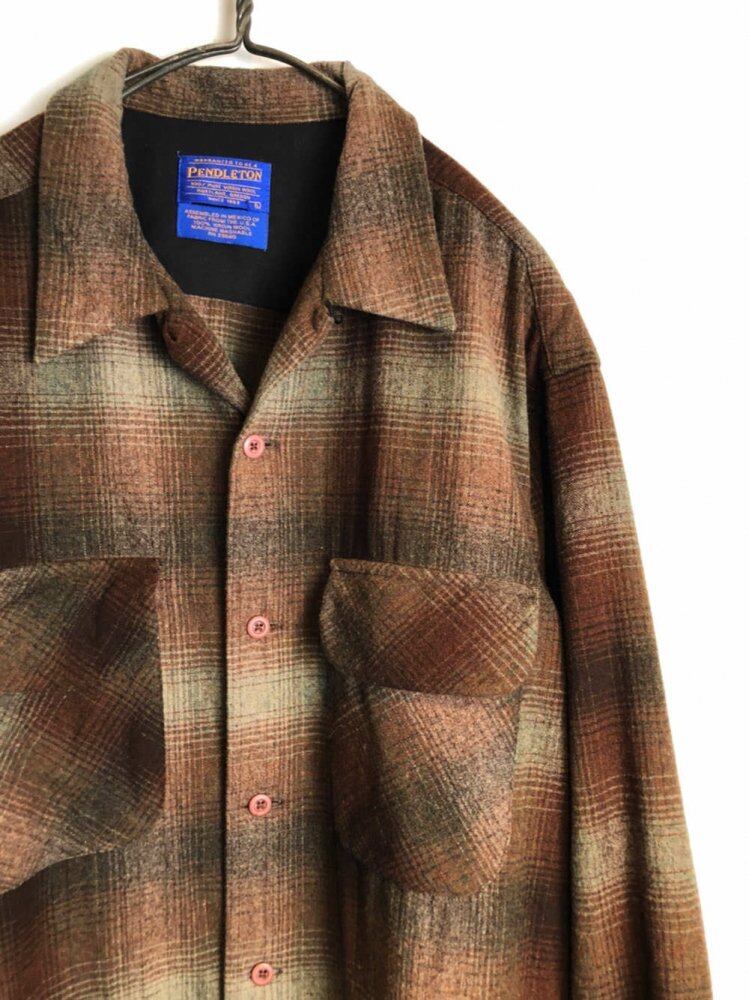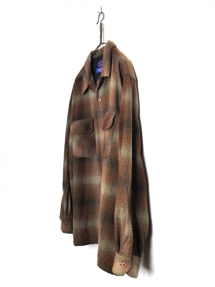 90s Pendleton Woolen Shirt A nice brown x gray ombre check pattern with a masculine loop color and flap pocket design on both chests Pendletons high quality 100% wool fabric can be worn with a loose over-silhouette A feeling of size is also the first place that looks like now