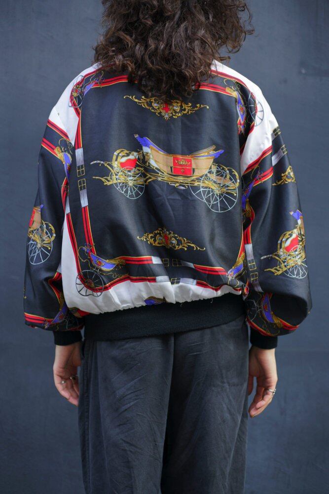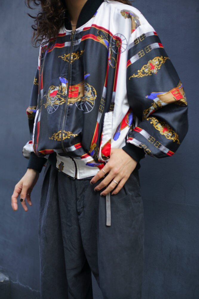 A zip-up nylon jacket with a Hermes pattern from the 1980s.<BR> Jackets that imitate the characteristic patterns of Maison brands such as Chanel and Hermes, which were popular around the 1980s, and the exquisite atmosphere are popular items.
