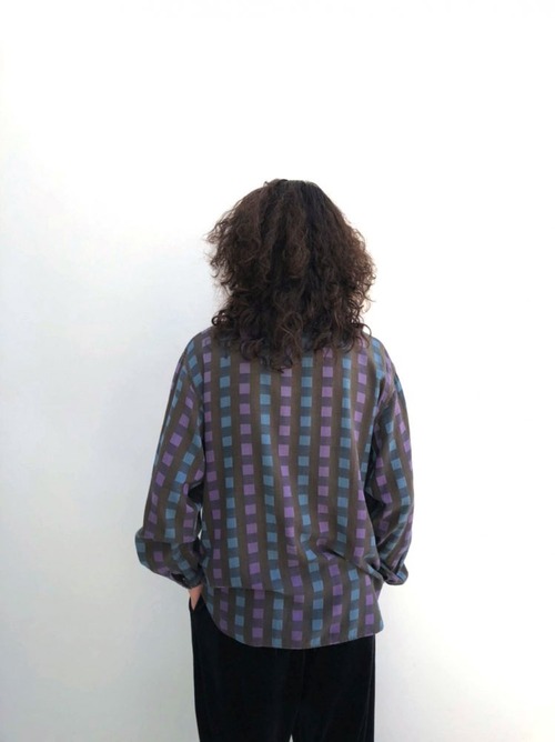 80s cotton shirt Check pattern of khaki, sax, and purple flavors. The design that looks like a tuck in the chest pocket is interesting. Just-mesh silhouette shirt