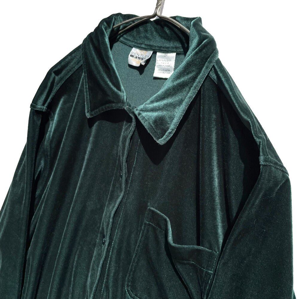 A velor shirt with a distinctive dark green color that shines even from a distance.