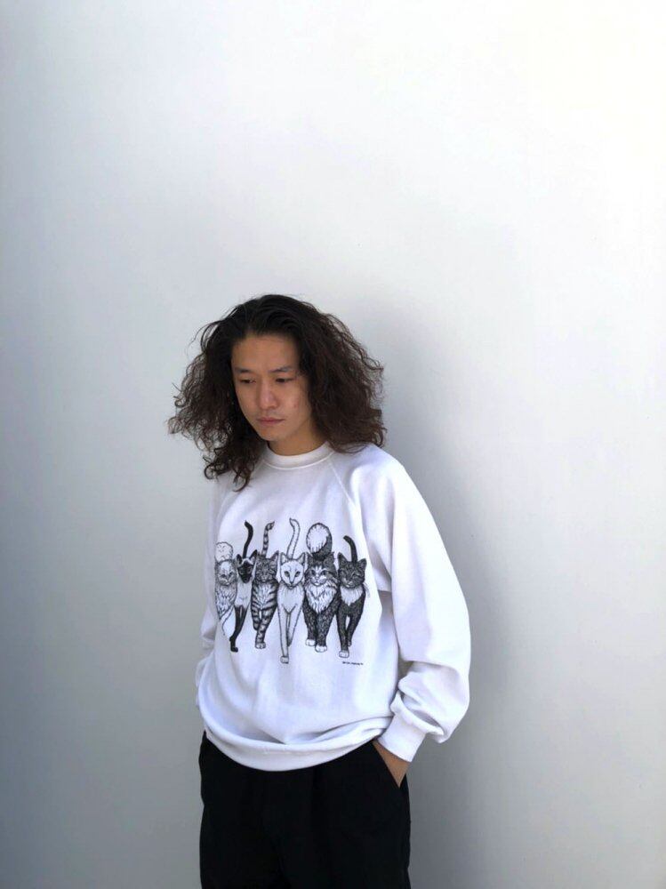 80s vintage sweatshirt The cats printed on the white body are unique and cute. Not only the front but also the back print is high. Vintage sweatshirt with a moderate size and easy-to-use silhouette.