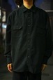 A big silhouette shirt with a unique slimy textured faux suede fabric.
