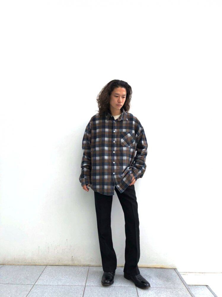 3XL size loose volume over silhouette Manly brown, navy, white check pattern Soft and soft cotton flannel This is the first item that can be used in three seasons from autumn to spring.