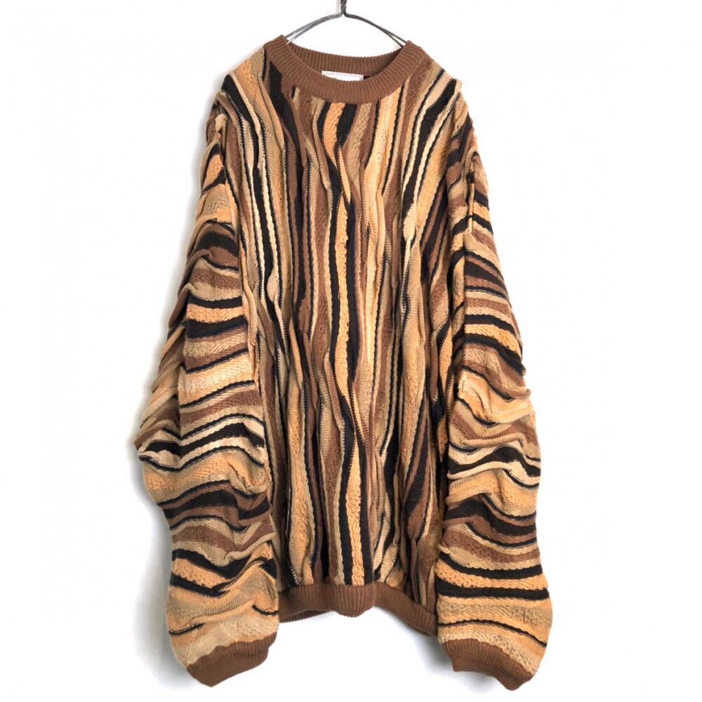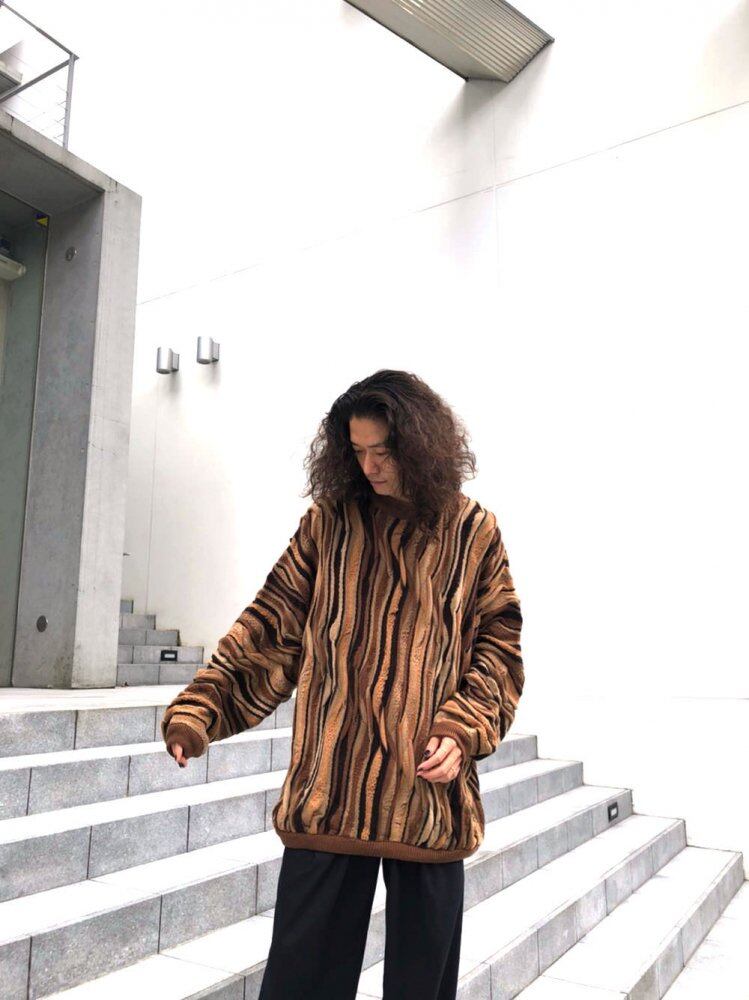 90s crew neck sweater A beige x brown swelling knitted fabric that looks like an animal pattern.